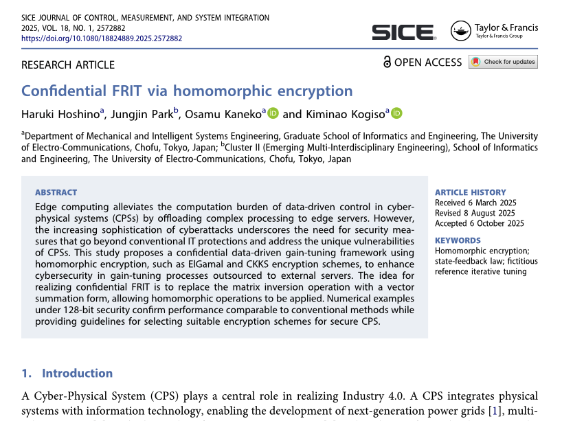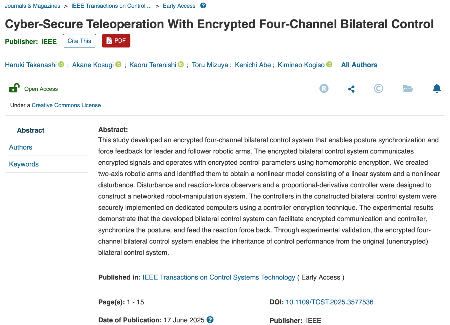 We have issued a press release titled “Protecting the ‘senses’ of robots from cyberattacks: achieving highly precise teleoperation while maintaining encryption” based on a collaborative research project with The Uni…